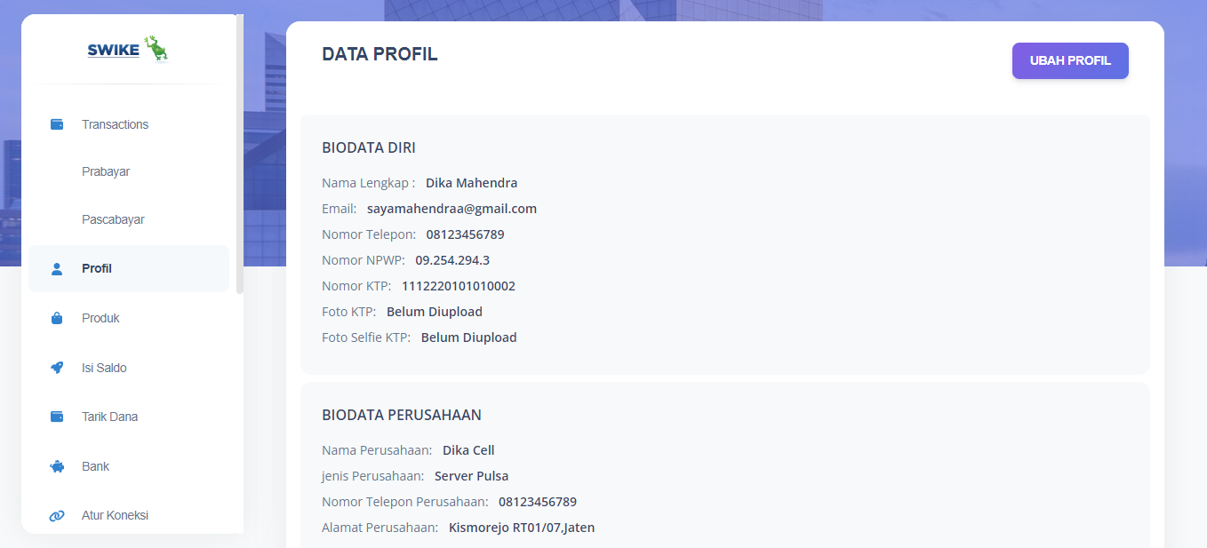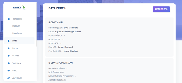silahkan lengkapi Profil Anda dengan menekan tombol Ubah Profil.