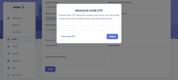 3. Sebuah kode One Time Password (OTP) akan dikirimkan ke Email Anda, periksa pesan dalam inbox Email Anda dan masukkan kedalam Form berikut :