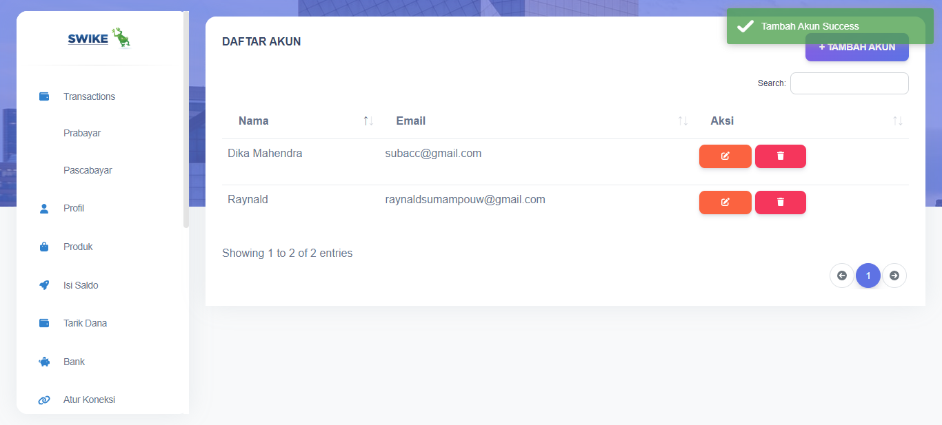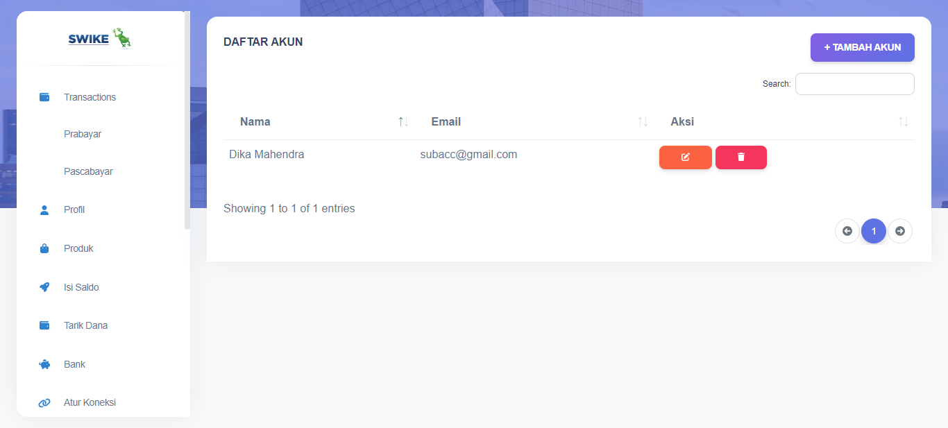 Anda dapat menambahkan sub akun untuk membantu anda dalam mengelola aktivitas di Swikee. Anda dapat klik menu Sub-Akun untuk dapat mengelola sub-akun anda.