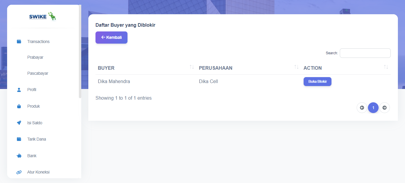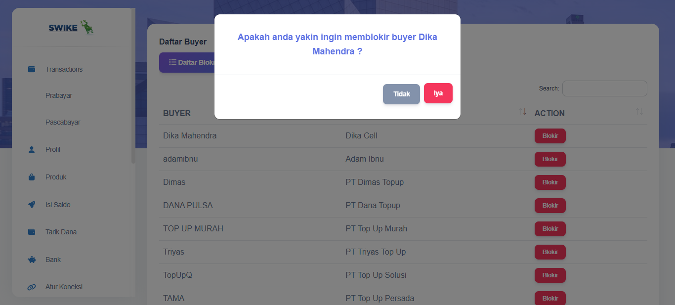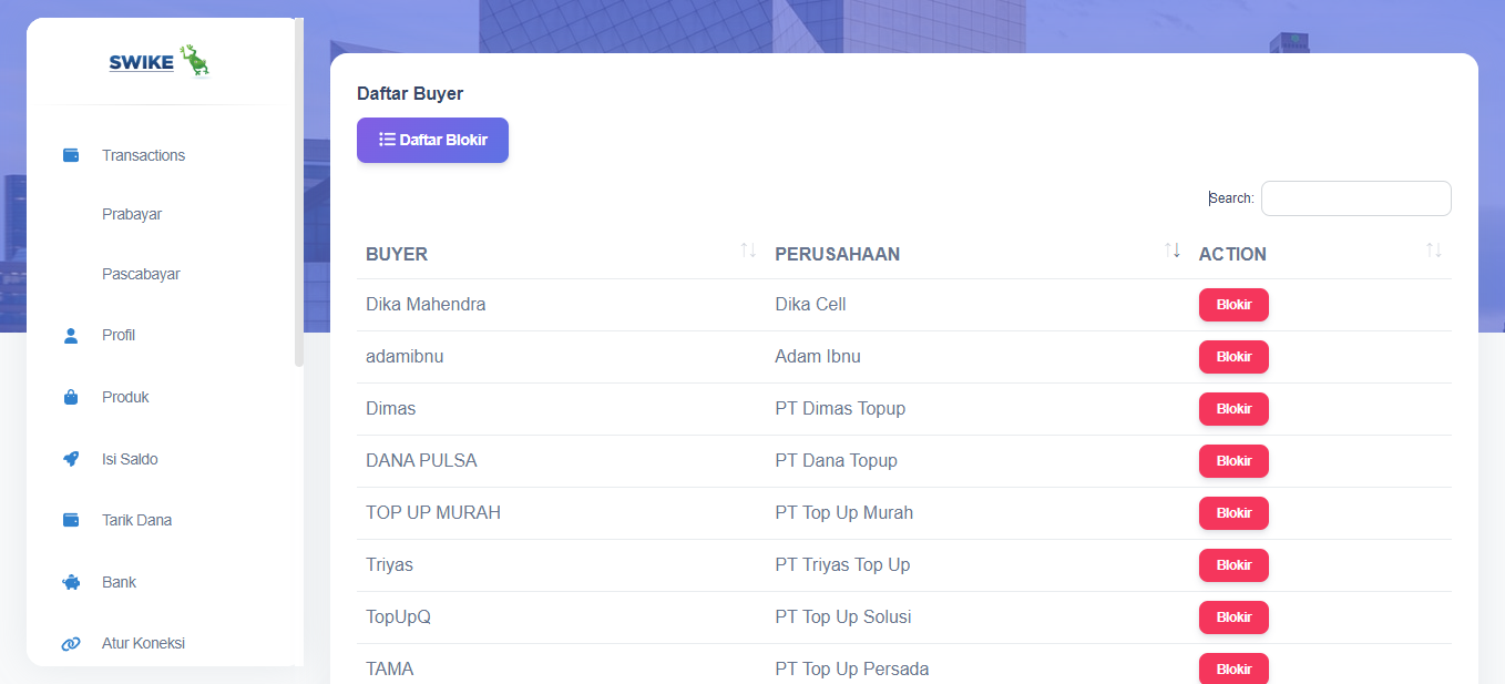Anda dapat memblokir Buyer dengan mengklik menu Daftar Buyer. Akan ditampilkan daftar seluruh Buyer, apabila anda hendak memblokir Blokir, klik tombol Blokir!