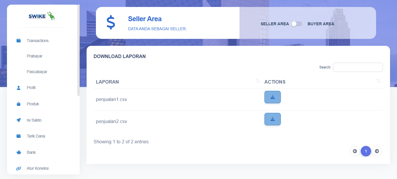 Anda dapat mendownload file laporan dalam bentuk csv pada tombol Download Laporan.